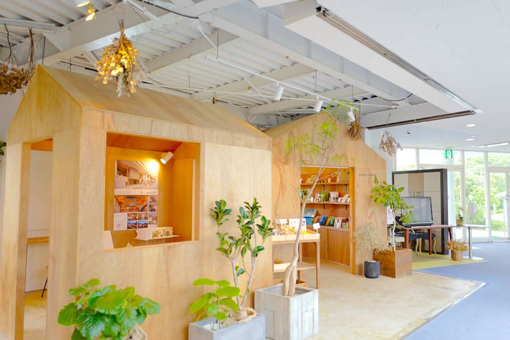 家業の土木関係のことに加え、県外ではグラフィックデザインを学ばれたそうです。そのためか館内は入り口を入って右手におしゃれなショップ・ギャラリースペースがあり、宿泊をしないつもりでもふらっと立ち寄ることができます。お菓子屋さんの「tutu」目当てで訪れるお客さんも多いそう。美味しそうな焼き菓子の香りがふんわりと漂います。
