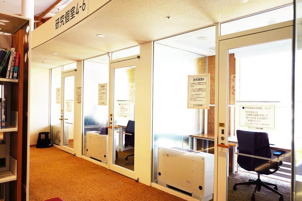 調べたい本や資料が見つかったら、研究個室や学習室など目的に合わせたスペースを活用することでさらにお仕事が捗りそうです。
