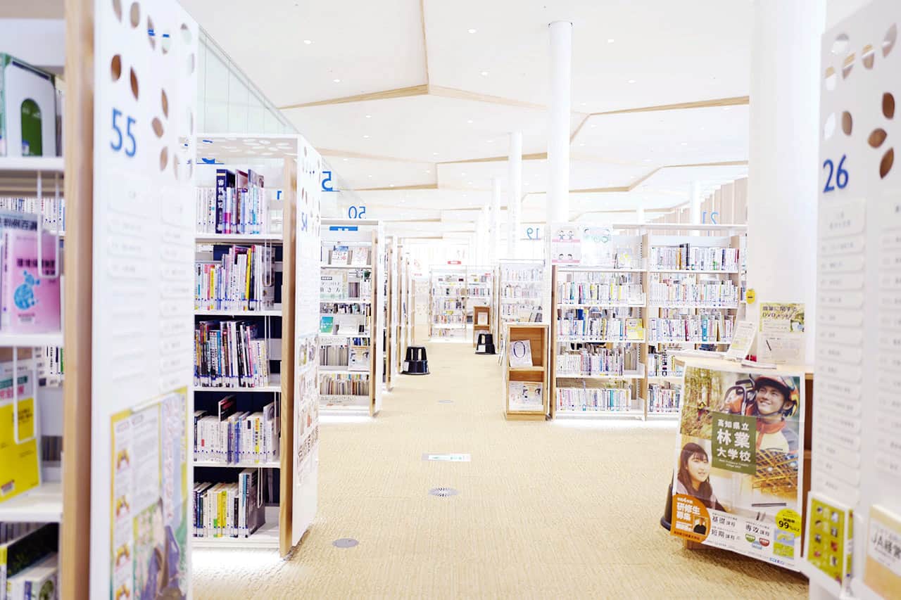高知市の中心地にあり、読書や学習の場として親しまれる明るい図書館。