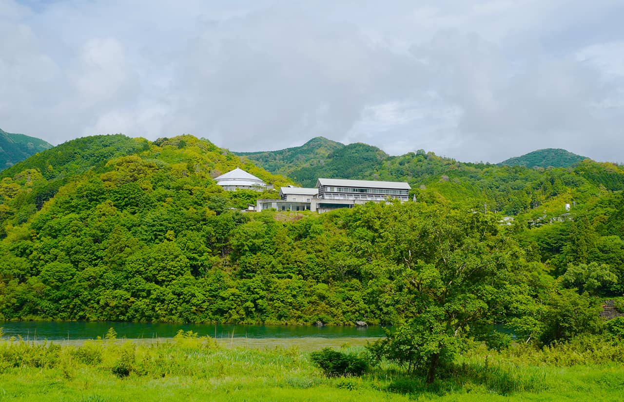 高知県西部、四万十市。西土佐の道の駅「よって西土佐」からゆったりと流れる川の向こうに見える、格好のいい建物。