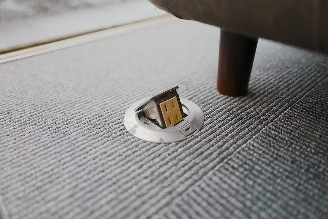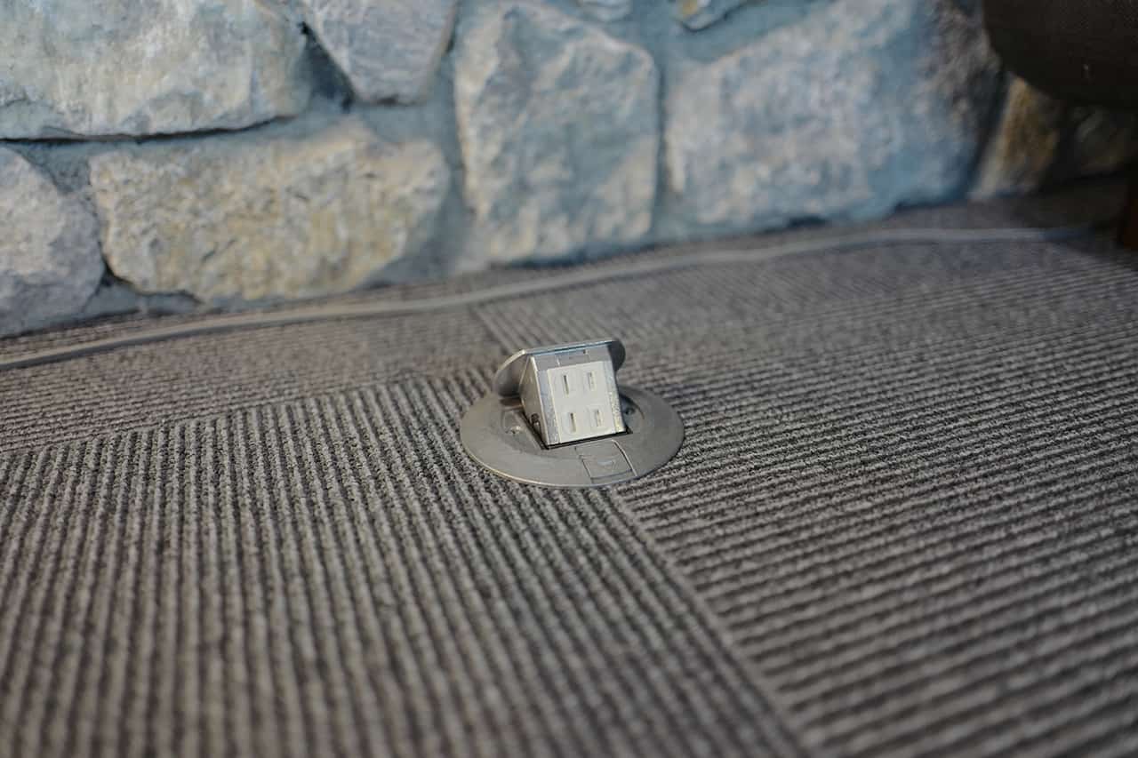 コンセントが至る所に設置されたホテルのラウンジ。ソファ席なので座り心地が良く、ふかふか…このラウンジ、お仕事にもぜひ使ってくださいとのこと。
