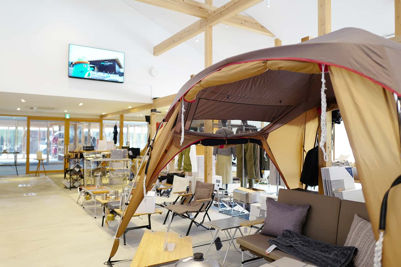 スノーピーク製のテーブルやチェアなどを追加でレンタルすることも可能。使ってみて気に入れば隣接の直営店で探してもらうのも良さそうです。