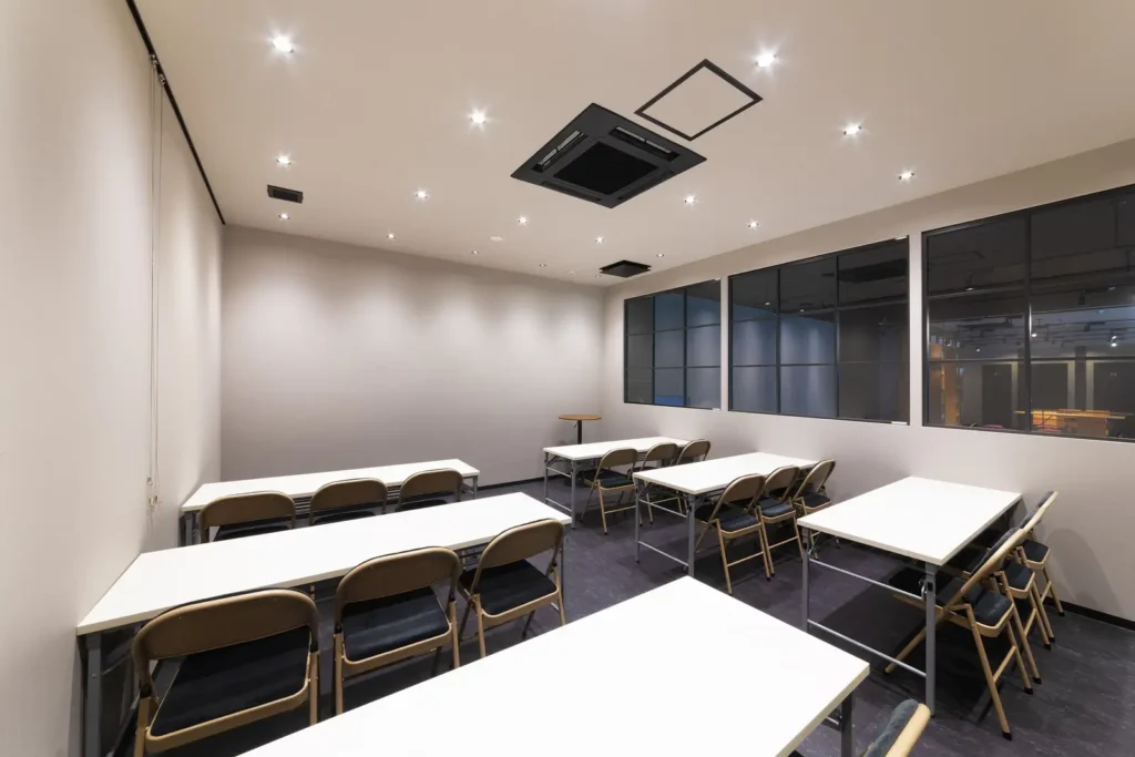 ドロップイン可、シェアオフィス、カフェバー、レンタルスペース 、複合機、プロジェクター、ホワイトボード、モニター、スピーカー、マイクほか