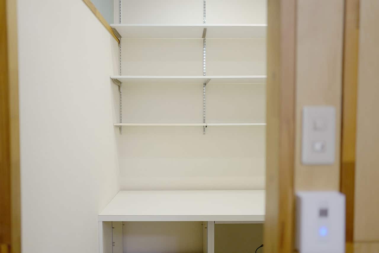 コンセントも数カ所に配され、入居しても家具が必要なさそうなお部屋も。備え付けの棚も多く、なんといっても木の温もりある造りが気持ちよく、とても使い勝手の良さそうな印象でした。