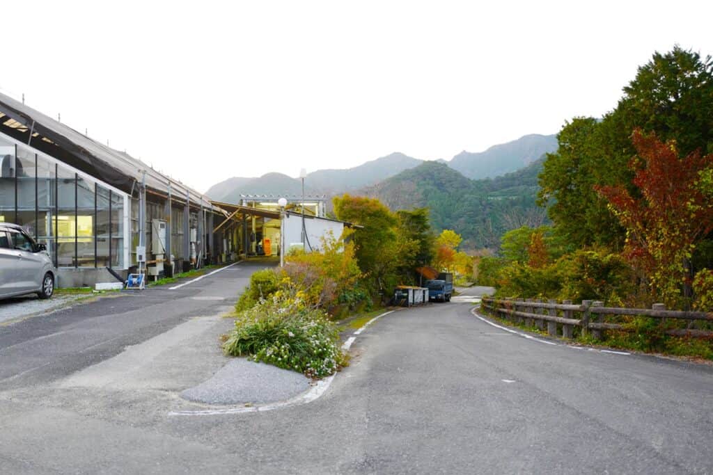 重なり合う美しい山々を眺めながら少し車を走らせると日帰り温泉も楽しめる「オーベルジュ土佐山」があり、その向かいにあるお店では地域の加工品やおやつ、ジュース、軽食が楽しめます。土佐山地区の旬の果物や木製品など、季節によって変わる品物も楽しみです。